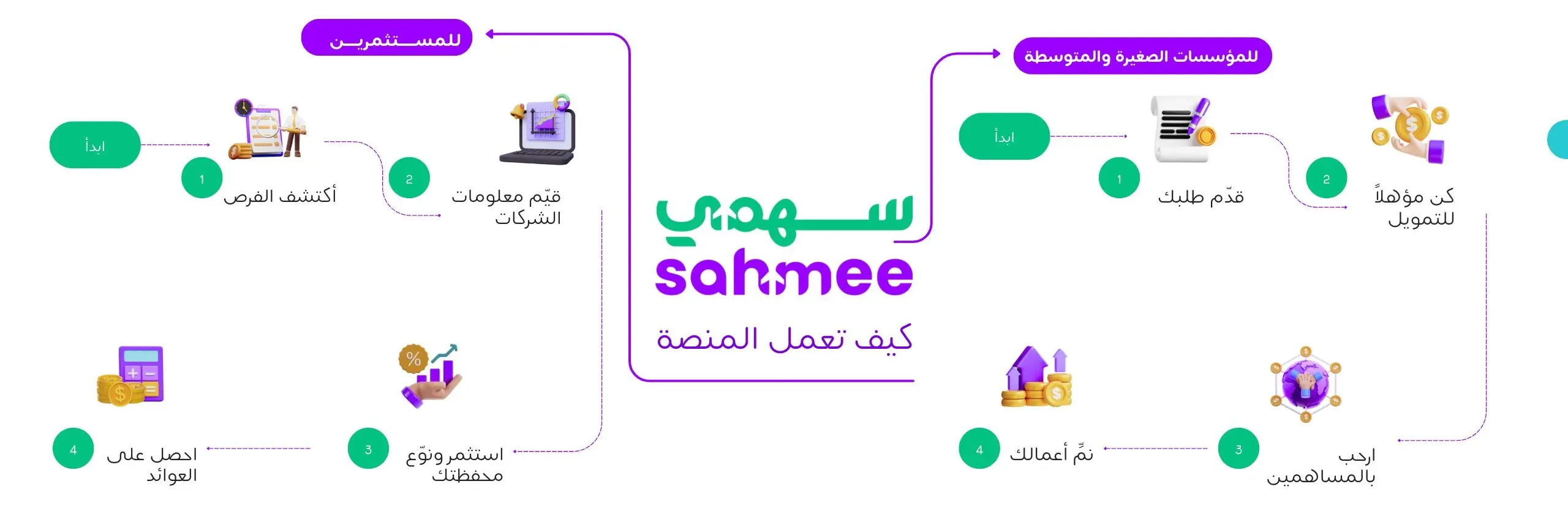 تعاونوا مع سهمي واستفيدوا من الوصول إلى شبكة تضم آلاف المستثمرين المؤهلين بالإضافة الى فرص النمو اللامتناهية.